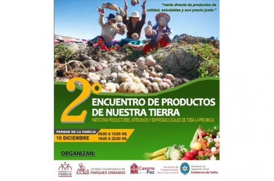 El 2° Encuentro de Productos de Nuestra Tierra se realizará el sábado 10 de diciembre de 9 a 15 y de 18 a 22 horas, en el Parque de la Familia y contará con más de 150 productores y empresas locales de toda la Provincia.