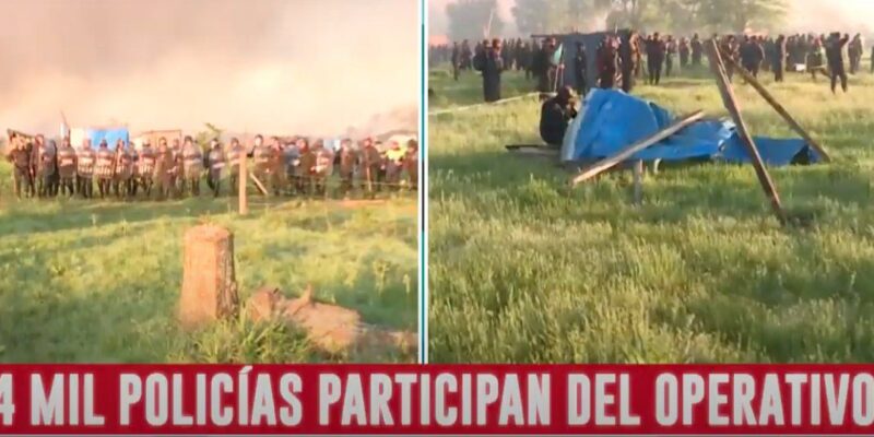 Luego de que la Justicia rechazara la posibilidad de una tercera prórroga, varios móviles policiales llegaron en la madrugada de este jueves hacia el predio de Guernica y con los primeros rayos del sol iniciaron el desalojo de las tierras tomadas. Ocurre en un clima tenso, con insultos, pedradas y algunos disparos de balas de goma.