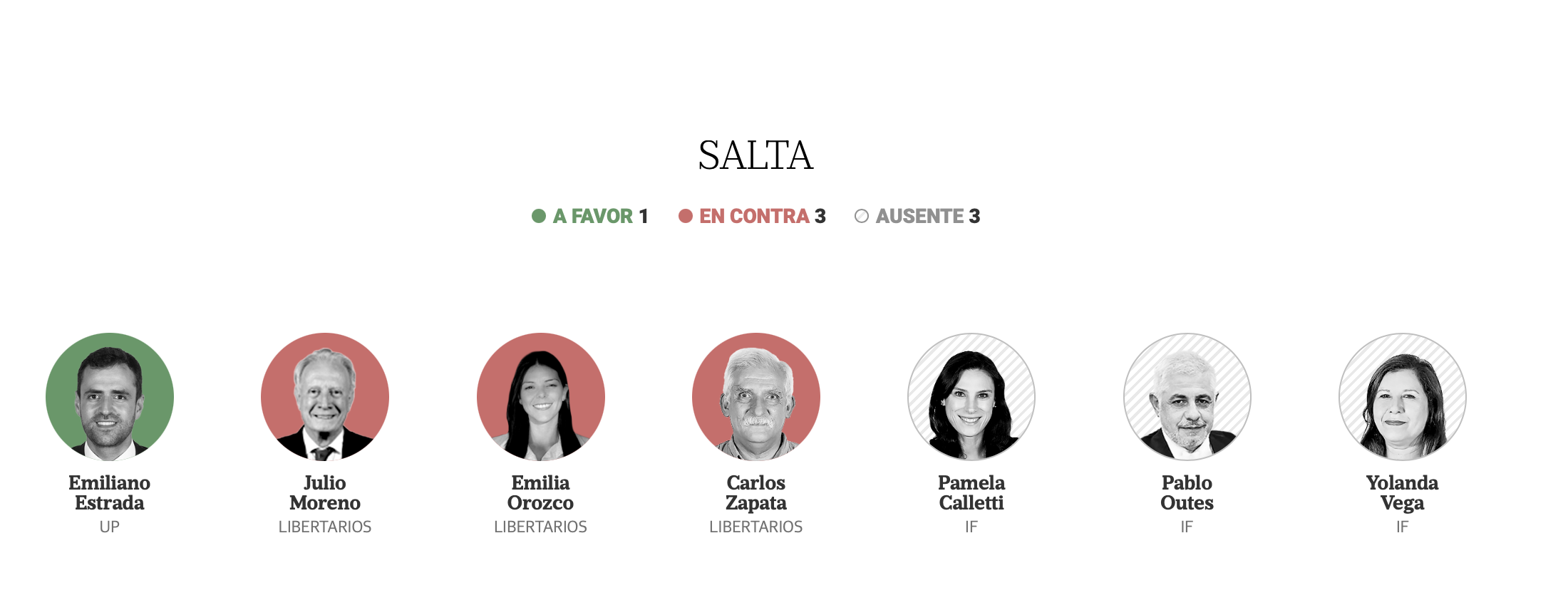 Emiliano Estrada (Unión por la Patria) fue el único diputado salteño que votó a favor, alineado con el bloque peronista que impulsó la iniciativa. En contra lo hicieron Carlos Zapata, Julio Moreno y Emilia Orozco, los tres referentes de La Libertad Avanza en Salta.