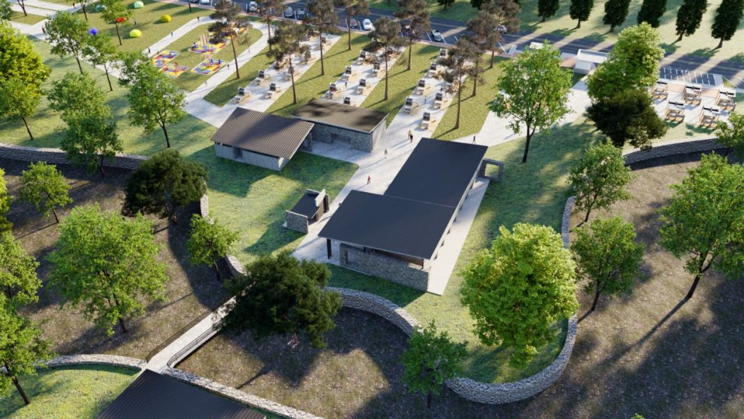 Se tiene previsto construir un cercado perimetral del predio en general y el parque de agua en particular, la creación de ingresos y refuerzos de muros de contención en terrazas y asadores, la delimitación de estacionamientos y zonas de carpas, la demolición del comedor y parrillas, más la creación de veredas perimetrales y terrazas de observación al dique con reposeras y sillas, la instalación de dos baterías de baños y una plaza seca alrededor de un nuevo SUM y una tienda. El desmantelado de un puente y la creación de un terraplén para la unión del parque acuático con el predio.