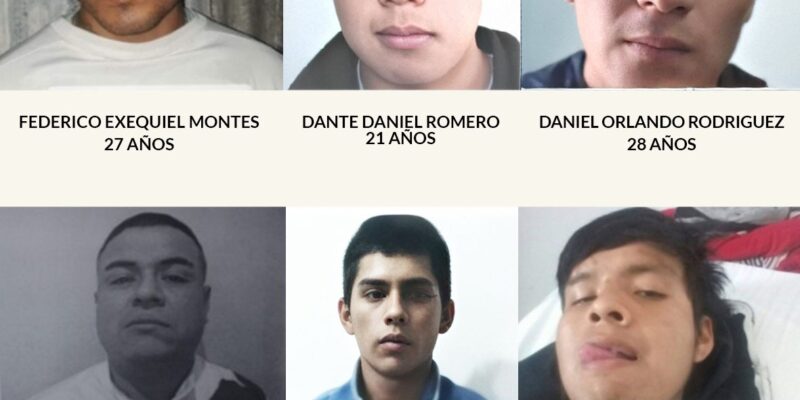 Se trata de los evadidos Enrique Javier Charico de 23, Federico Exequiel Montes de 27, Dante Daniel Romero de 21, Gabriel Armando Cisneros de 29, Daniel Orlando Rodríguez de 28 y Sergio Cigarra de 24, todos ellos detenidos por delitos contra la propiedad.