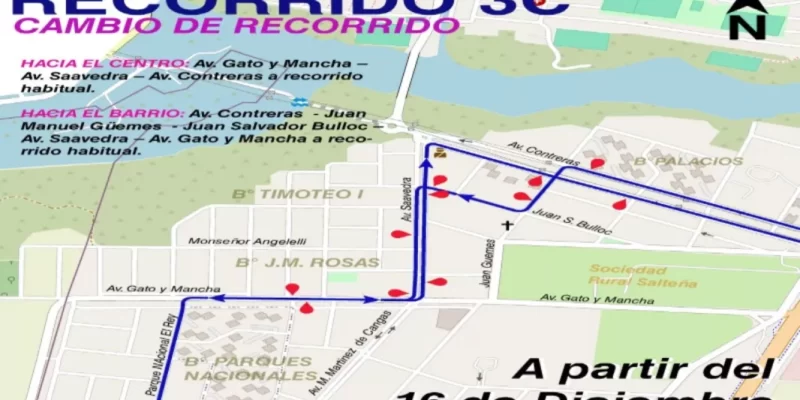Teniendo en cuenta que la pavimentación de la Av. Saavedra, desde Gato y Mancha hasta la Av. Contreras, permite optimizar la cobertura de los barrios Timoteo, M. M. Güemes y J. M. Rosas atendidos por el 3C, se dispuso el siguiente recorrido: