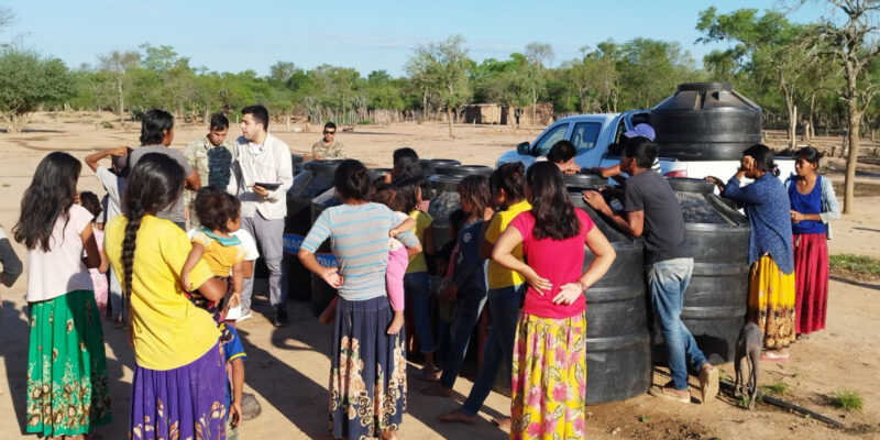 El Ministerio de Defensa, a través de la Secretaría de Coordinación Militar en Emergencias, distribuyó tanques de agua con el objetivo de asegurar el acceso a agua potable a familias de pueblos originarios del Chaco Salteño.