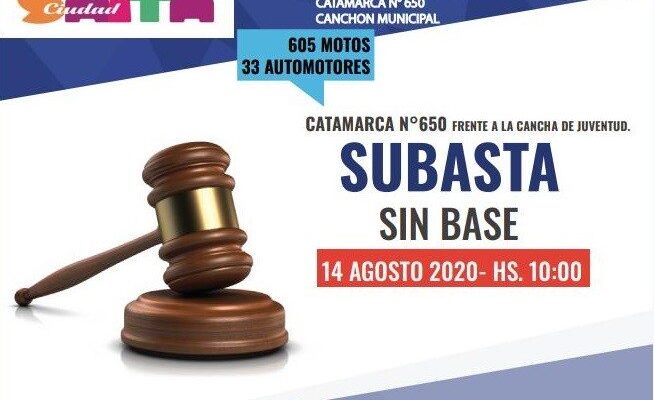 El evento estaba programado para este viernes, y se ofrecían 605 motocicletas y 33 automóviles, sin base, al contado y al mejor postor, en las condiciones en que se encuentren. Iba a realizarse en el canchón municipal, ubicado en Catamarca 650.