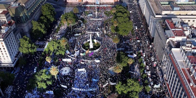 Vista aérea de la plaza colmada (Foto: Claudio Fanchi).