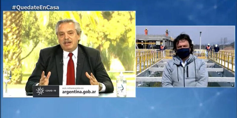 Acompañado por los ministros de Economía, Martín Guzmán, y de Obras Públicas, Gabriel Katopodis, y la directora de Relaciones Institucionales de esta última cartera, María Pía Villarino, el Jefe de Estado mantuvo una comunicación por videoconferencia con los gobernadores Jorge Capitanich (Chaco), Oscar Herrera Ahuad (Misiones), Sergio Ziliotto (La Pampa), Juan Schiaretti (Córdoba) y Gustavo Sáenz (Salta).