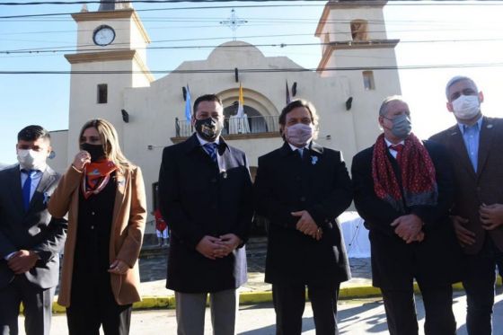Las autoridades tras asistir al solemne Tedeum oficiado por el arzobispo Mario Cargnello, se trasladaron a la plaza Martín Fierro para iniciar los actos protocolares.