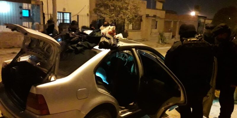 Con las características aportadas, un efectivo que se encontraba en un vallado en jurisdicción de Barrio Sanidad divisó el paso del vehículo recomendado, logrando darles alcance en barrio La Paz dónde solicitó apoyo.