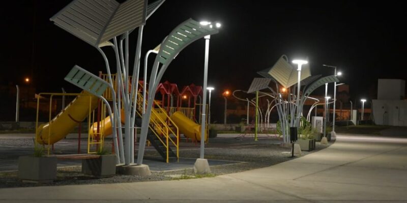 El secretario de Obras Públicas, Hugo de la Fuente, y la secretaria de Planificación, Laura Caballero, verificaron el funcionamiento de la iluminación en todo el predio del nuevo parque urbano de la zona sur de la ciudad de Salta. La prueba coincidió con la visita de un grupo de concejales capitalinos quienes conocieron detalles del proyecto que dará a las familias salteñas un nuevo espacio de encuentro y recreación.
