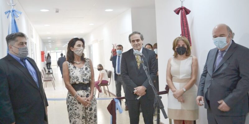 El procurador general de la provincia, Pedro García Castiella, la presidenta del Colegio de Gobierno del Ministerio Público y asesora general de Incapaces, Mirta Lapad; ; el defensor general, José Gabriel Chibán; la presidenta de la Corte de Justicia, Teresa Ovejero y el ministro de Seguridad y Justicia, Abel Cornejo, inauguraron las oficinas en las que desde ahora funcionarán las Fiscalías pertenecientes a la Unidad de Delitos contra la Integridad Sexual.