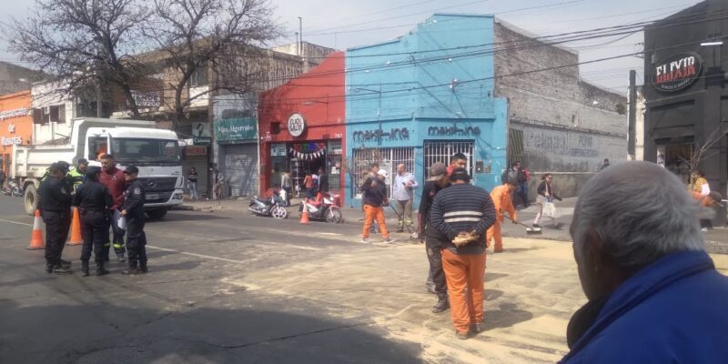 Ante esta situación, diversas áreas municipales y provinciales intervinieron de inmediato para llevar a cabo las tareas de absorción y barrido del derrame.