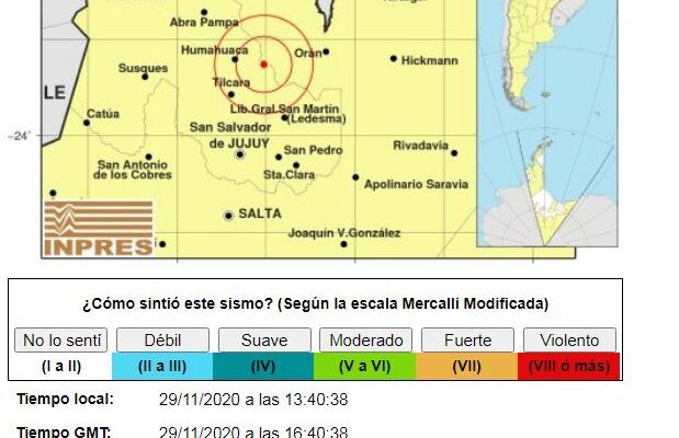 Un fuerte sismo se percibió este mediodía en la provincia. El epicentro del movimiento telúrico fue en el norte de la provincia a 177 kilómetros de la ciudad de Salta y en cercanía al límite con Jujuy.