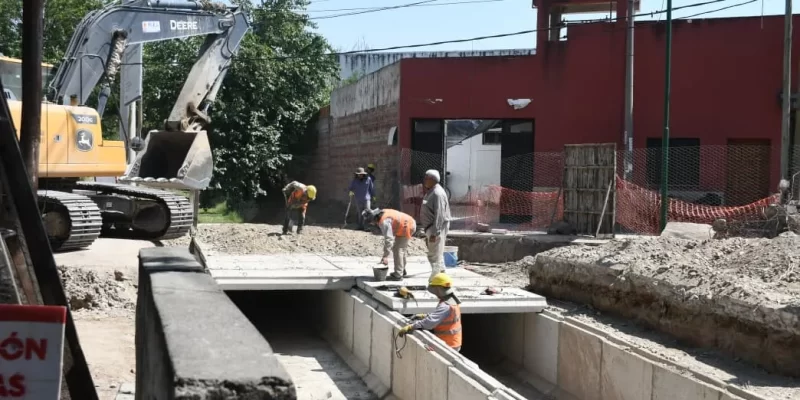 Con un avance del 80%, los trabajos incluyen la instalación de premoldeados que duplican la capacidad de captación y drenaje del agua, mitigando así los históricos problemas de anegamiento en la zona.