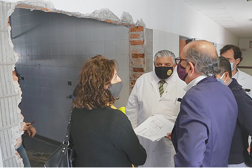Acompañaron en la recorrida, el ministro de Infraestructura, Sergio Camacho, el secretario de Obras Públicas, Hugo de la Fuente, la secretaria de Desarrollo Organizacional, Verónica Guzmán y el gerente general del hospital, Daniel Mamaní.