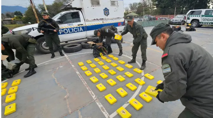 Los detenidos, identificados como el oficial Bravo y el agente Mauro Palacios, fueron sorprendidos en el puesto de control de Aguaray, perteneciente al Escuadrón 54 de Gendarmería Nacional, mientras transportaban la droga en una camioneta oficial de la Policía de Salta.