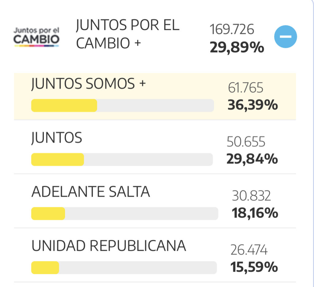 El olmedista Carlos Zapata, de “Juntos Somos+” (11,45%) ganó la interna de Juntos por el Cambio+ en Salta en las eleciones PASO de este domingo.
